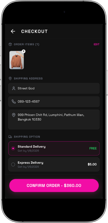 • เลือกดูสินค้าสตรีทแวร์ เพิ่มลงตะกร้า